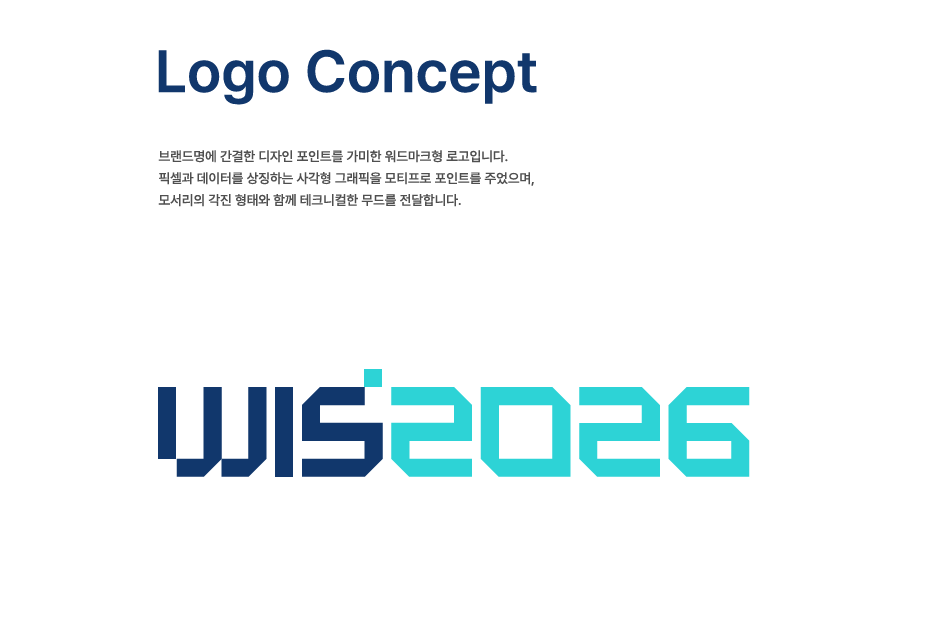 데이터와 픽셀을 상징하는 사각형 모티프로 미래지향 정보통신 전시회로서 포지셔닝 되기위해 만들어진 디자인입니다.