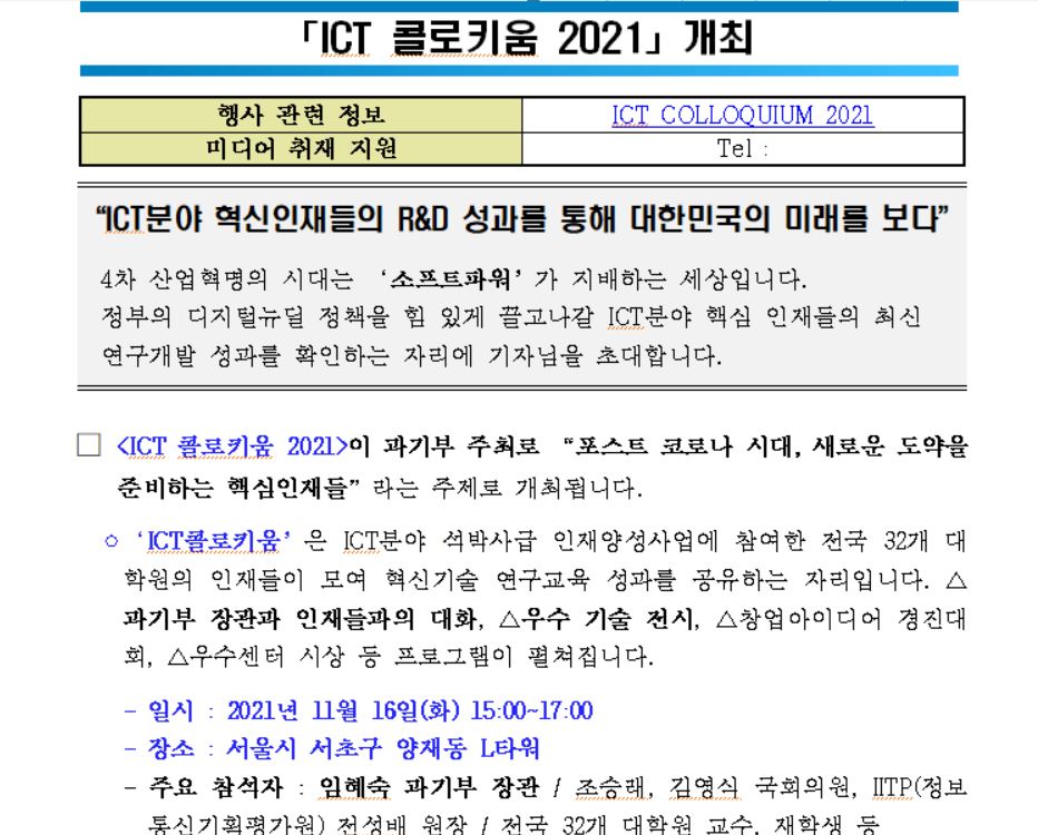 함께 연대하는 행사인 "ICT콜로키움"행사를 지난 11월15일부터 21일까지